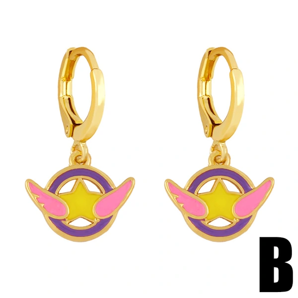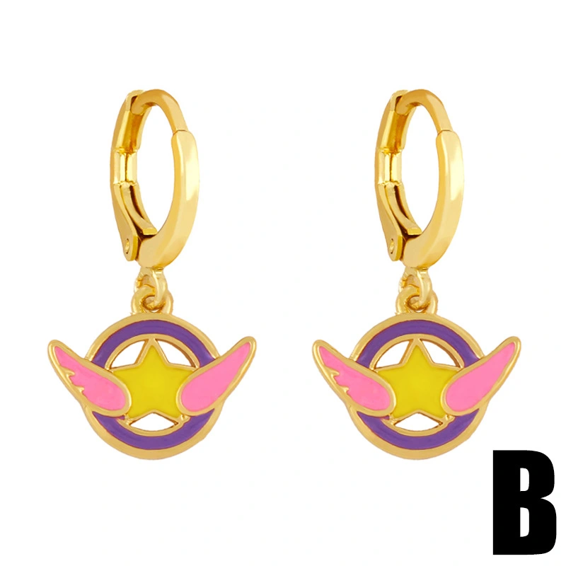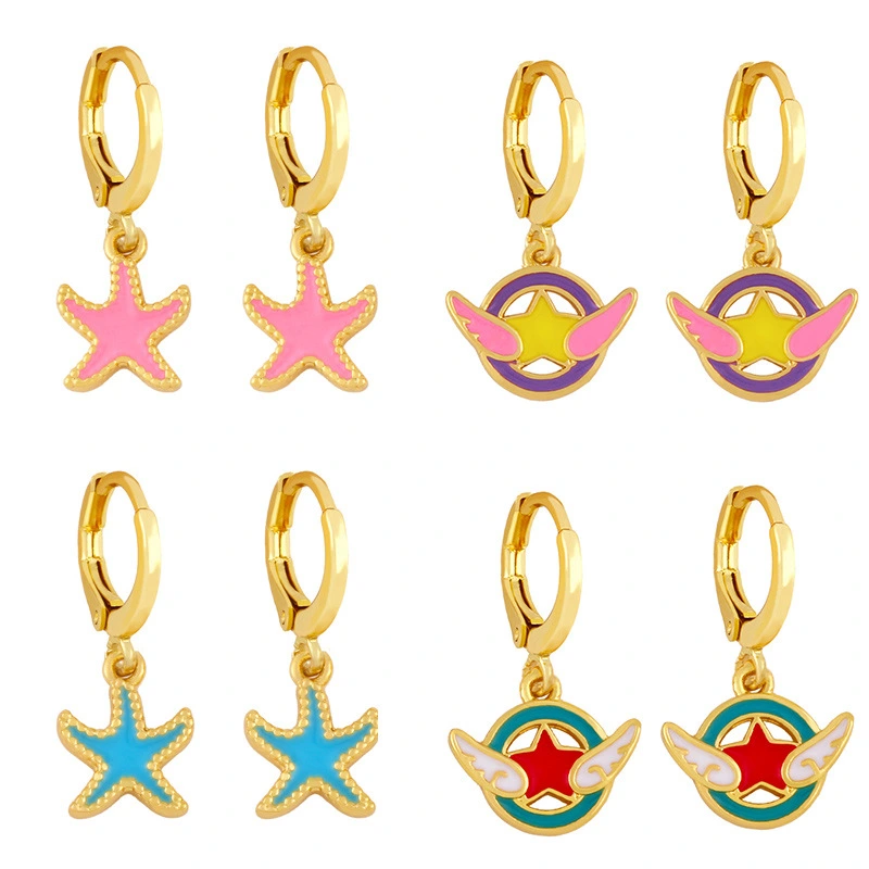 Boucles d'oreilles créatives en forme d'ailes d'ange, étoiles à cinq branches, style européen et américain, style goutte d'huile, géométriques, erx79