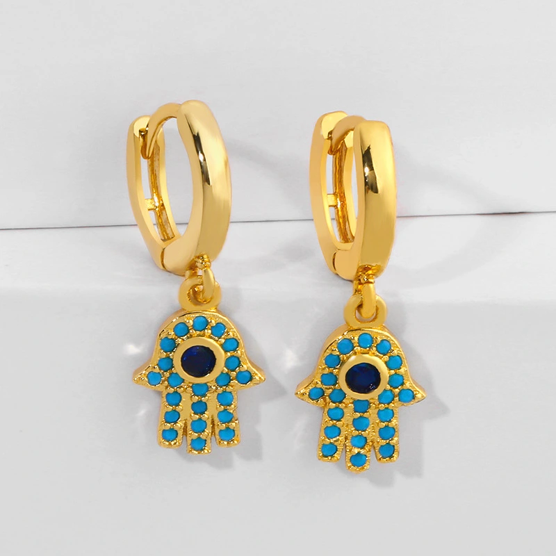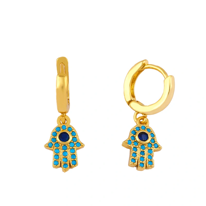 Boucles d'oreilles créatives européennes et américaines tendance en forme de palmier exotique, boucles d'oreilles pour femmes en cuivre micro-incrusté de zircons colorés ers70
