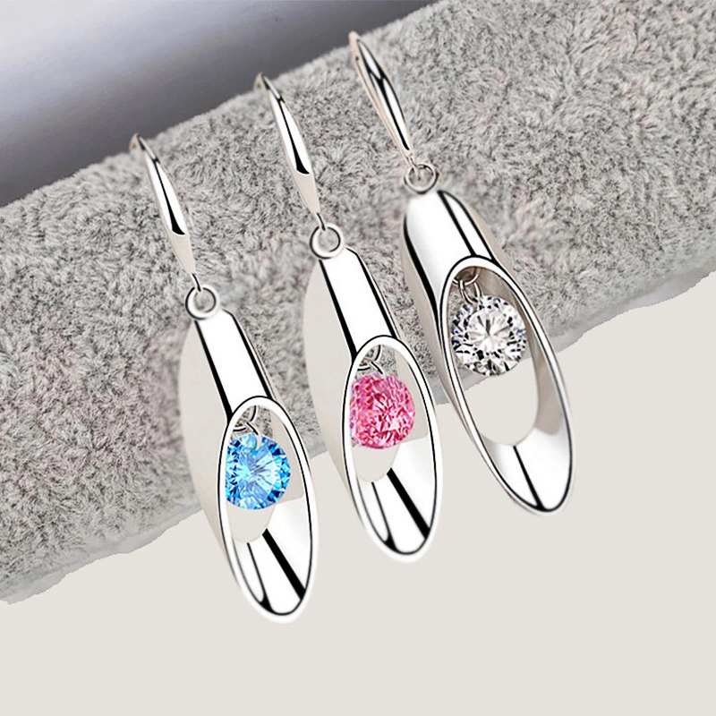 Boucles d'oreilles coréennes élégantes et élégantes, mélange et assortiment de boucles d'oreilles ovales micro-incrustées de zircons scintillants, vente directe d'usine