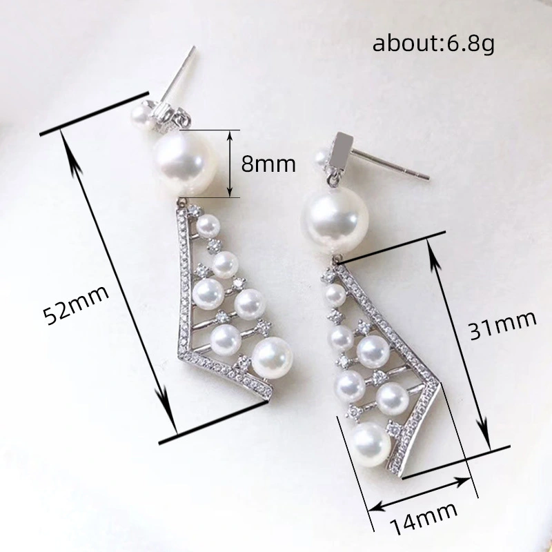 Boucles d'oreilles de luxe européennes et américaines en imitation de perles, boucles d'oreilles géométriques longues et irrégulières, boucles d'oreilles symétriques pour femmes