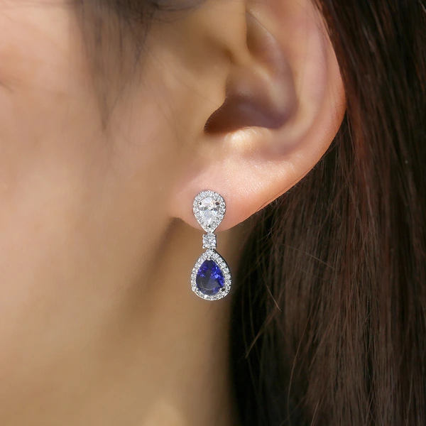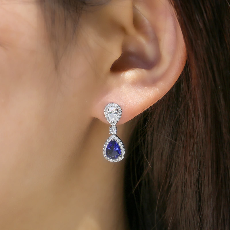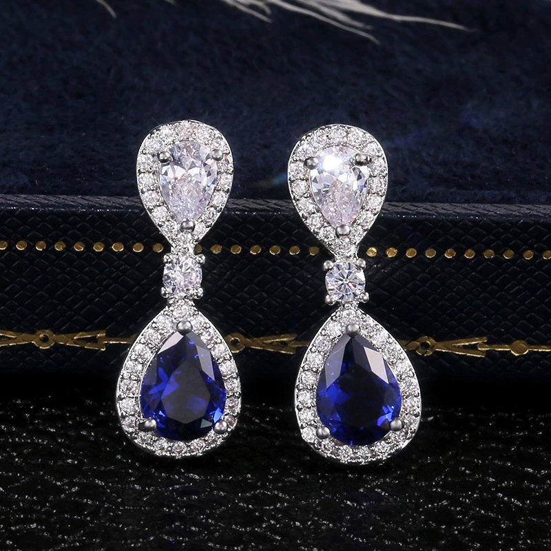 Boucles d'oreilles de soirée en forme de goutte d'eau bleu royal, bijoux populaires européens et américains, nouvelle collection de stations indépendantes, nobles et luxueuses
