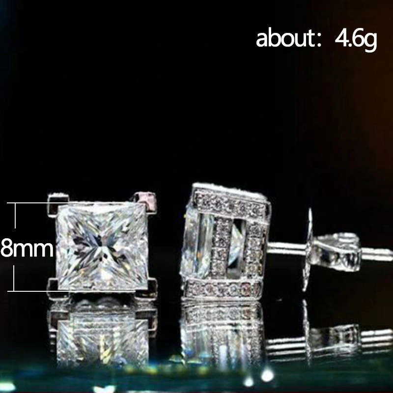 Boucles d'oreilles de style européen et américain, boucles d'oreilles carrées à quatre griffes, simples et polyvalentes, en platine plaqué cuivre pour femmes