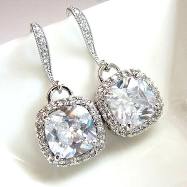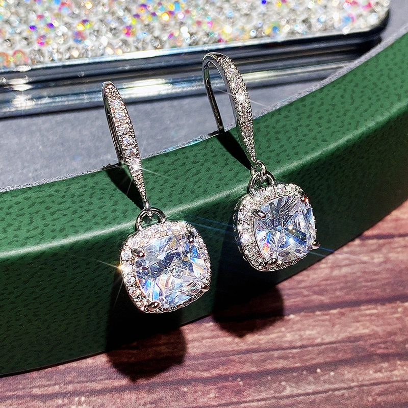 Boucles d'oreilles de style nouveau, simples et éblouissantes, boucles d'oreilles carrées en diamant et zircon pour femmes, crochets d'oreilles tendance pour les déplacements