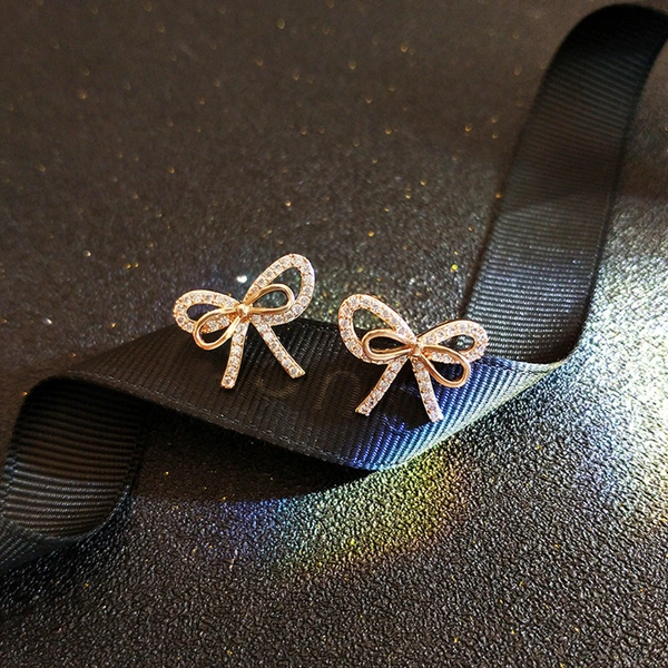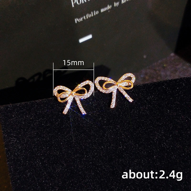 Boucles d'oreilles élégantes en forme de nœud de fée pour femmes, boucles d'oreilles en diamant de célébrité Internet de tempérament coréen, boucles d'oreilles légères et luxueuses en forme de cœur pour filles