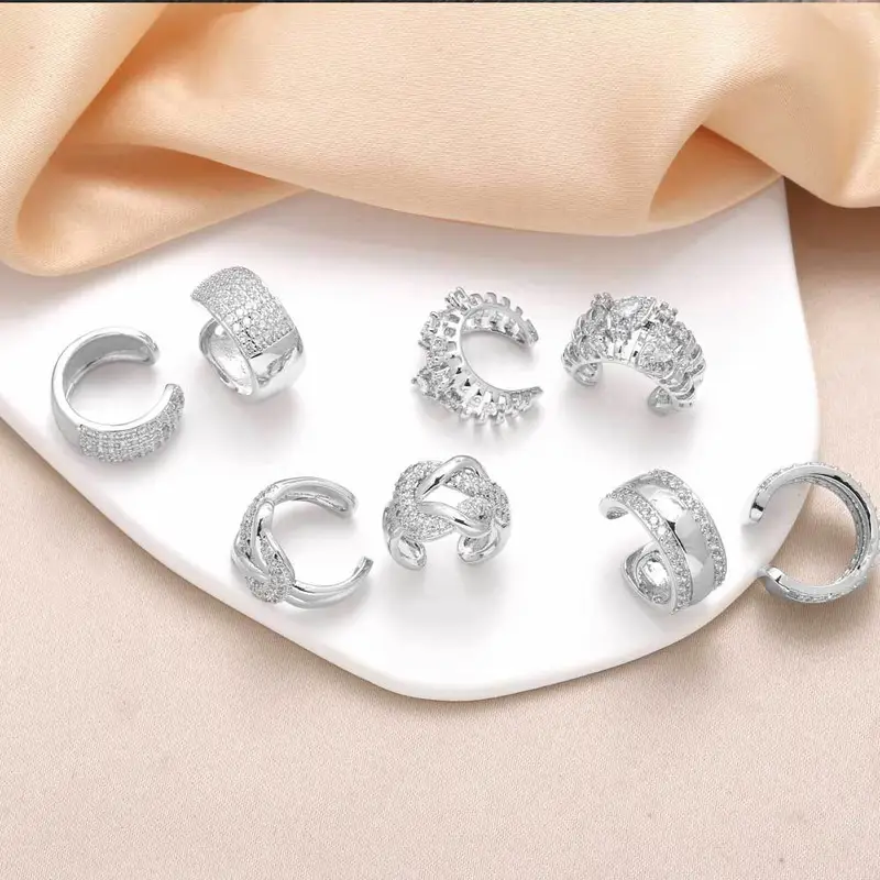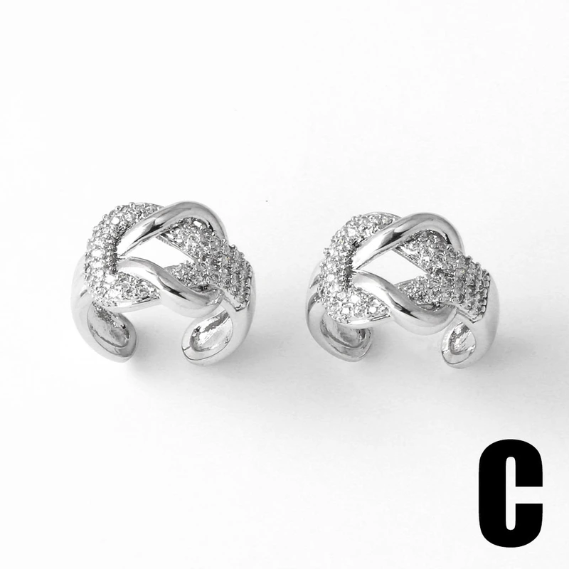 Boucles d'oreilles en forme de C, style européen et américain, clip d'oreille, plaqué cuivre 18 carats, incrusté de zircons, boucles d'oreilles clip d'oreille, era121