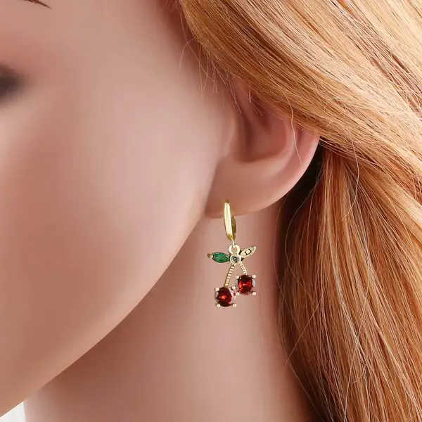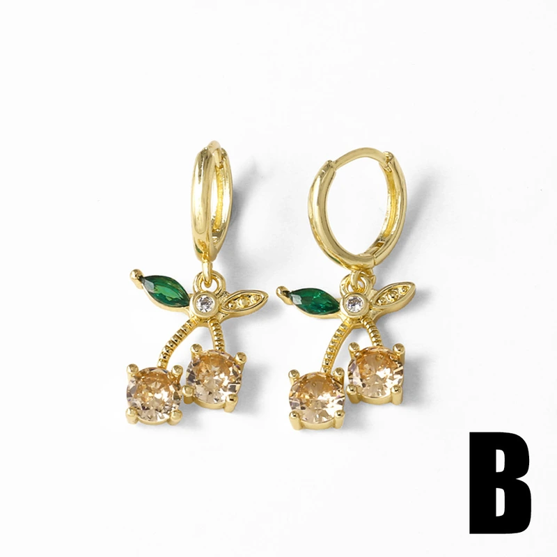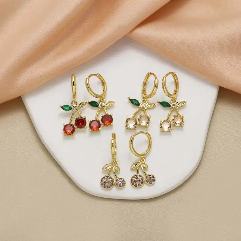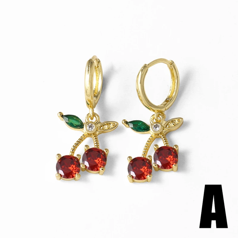 Boucles d'oreilles en forme de cerise pour femme, bijoux en plaqué or, incrustées de zircons colorés, ery36