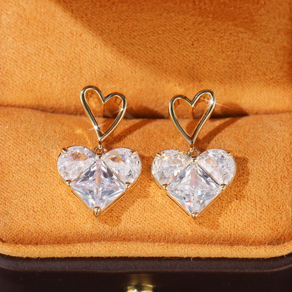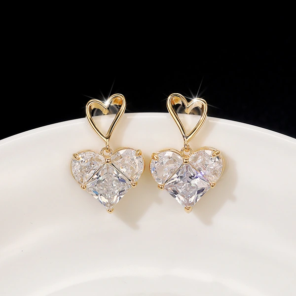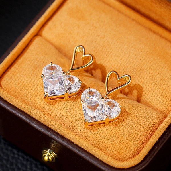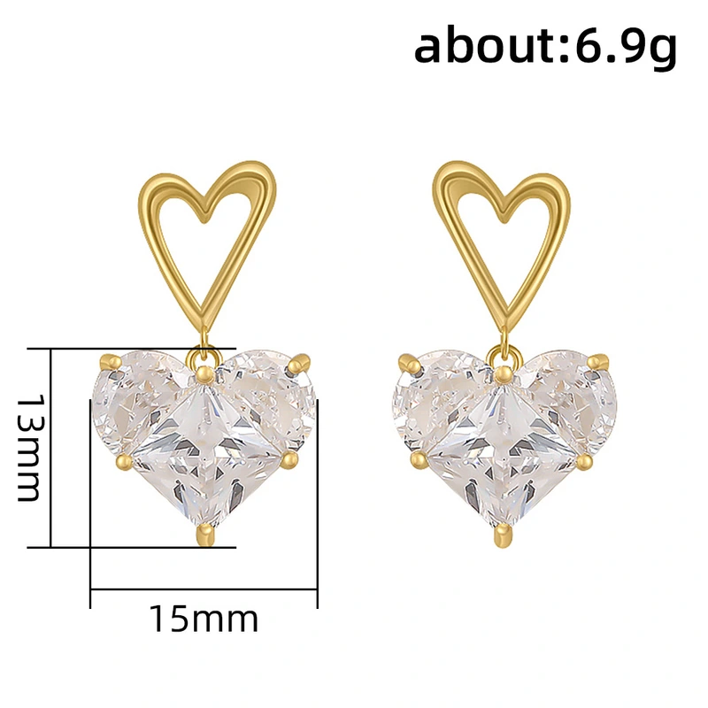Boucles d'oreilles en forme de cœur brisé en zircon, style cool, tendance, légères, design luxueux, personnalité, tempérament, en forme de cœur