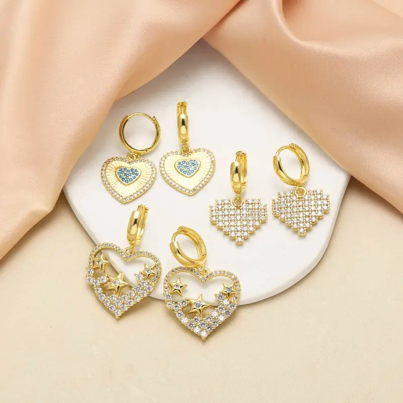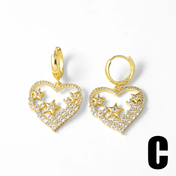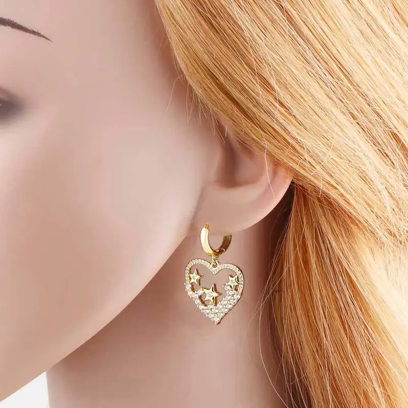 Boucles d'oreilles en forme de cœur et d'étoile en or 18 carats plaqué cuivre, bijoux tendance pour femmes, ery99