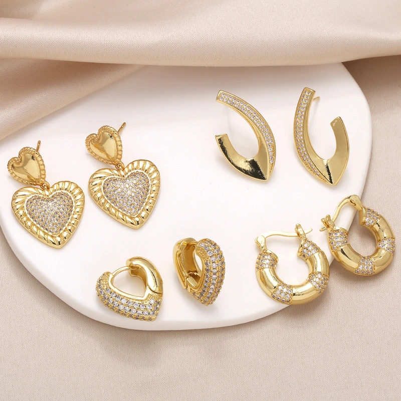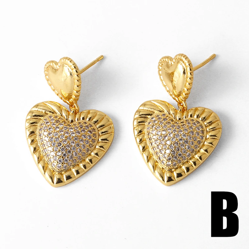 Boucles d'oreilles en forme de cœur plaqué or pour femme, bijoux tendance, en zircone, era011