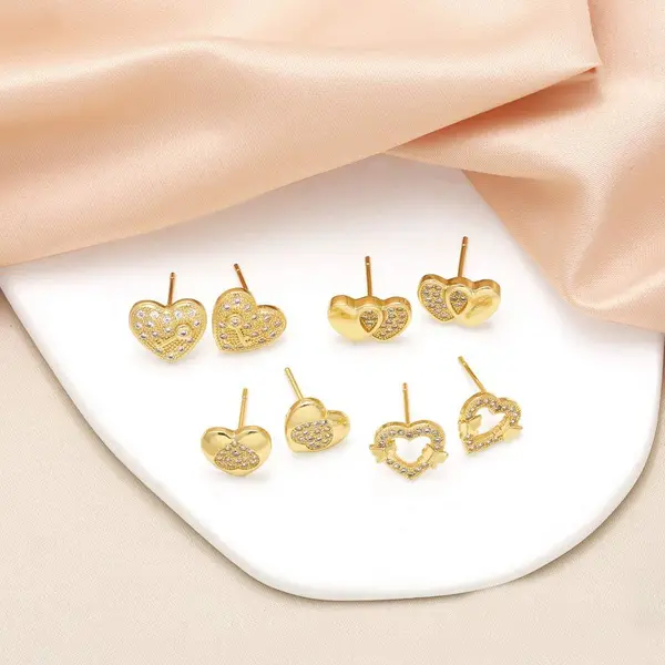 Boucles d'oreilles japonaises et coréennes en forme de cœur, boucles d'oreilles micro-incrustées bicolores tournesol et tournesol, boucles d'oreilles élégantes au design creux