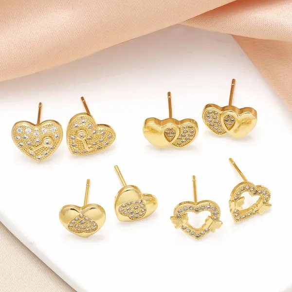 Boucles d'oreilles en forme de cœur pour femme, bijoux en plaqué cuivre véritable, incrustés de zircons, tendance en Europe et aux États-Unis, era357