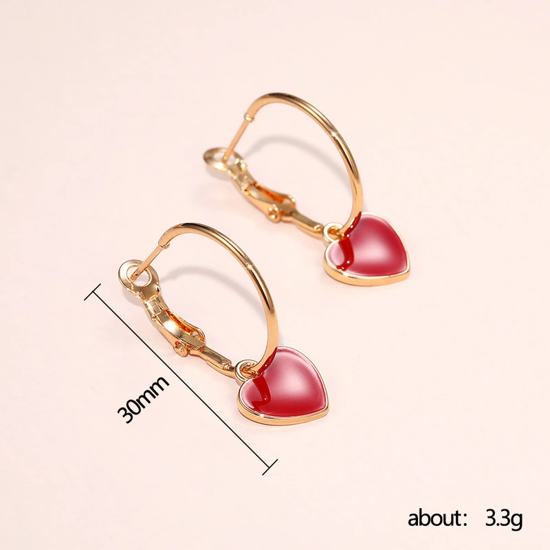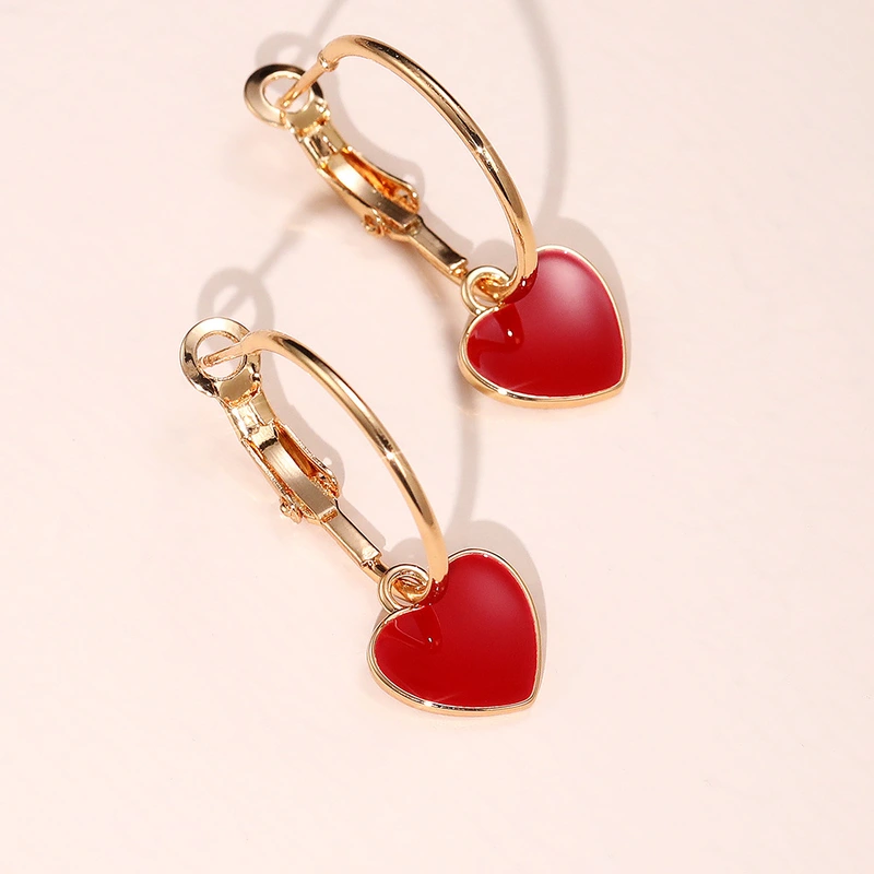 Boucles d'oreilles en forme de cœur rouge, style urbain, tendance, style européen et américain, pour femmes