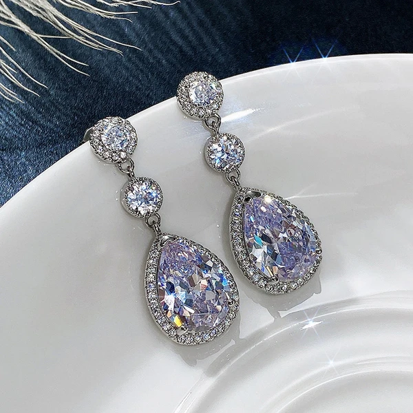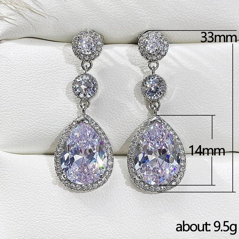Boucles d'oreilles en forme de larme pour banquet de mariée, populaires en Europe et aux États-Unis, en cuivre incrusté de zircons AAA, fabricants en gros