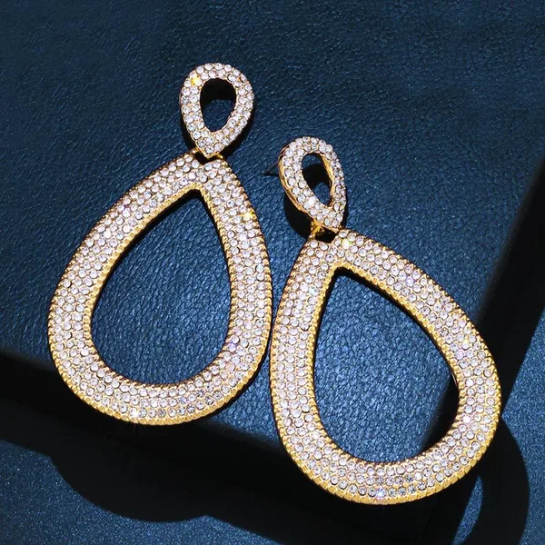 Boucles d'oreilles en forme de larme pour femmes, style européen et américain, style rétro, personnalité exagérée, boucles d'oreilles en diamant, boucles d'oreilles de célébrités, erm28