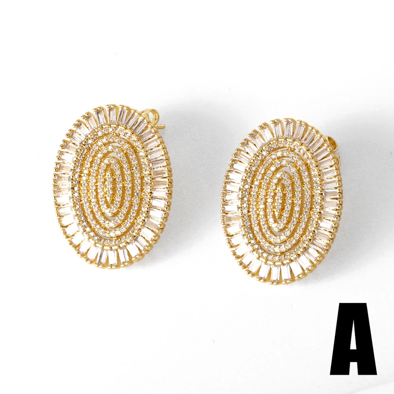 Boucles d'oreilles coréennes élégantes et élégantes, mélange et assortiment de boucles d'oreilles ovales micro-incrustées de zircons scintillants, vente directe d'usine