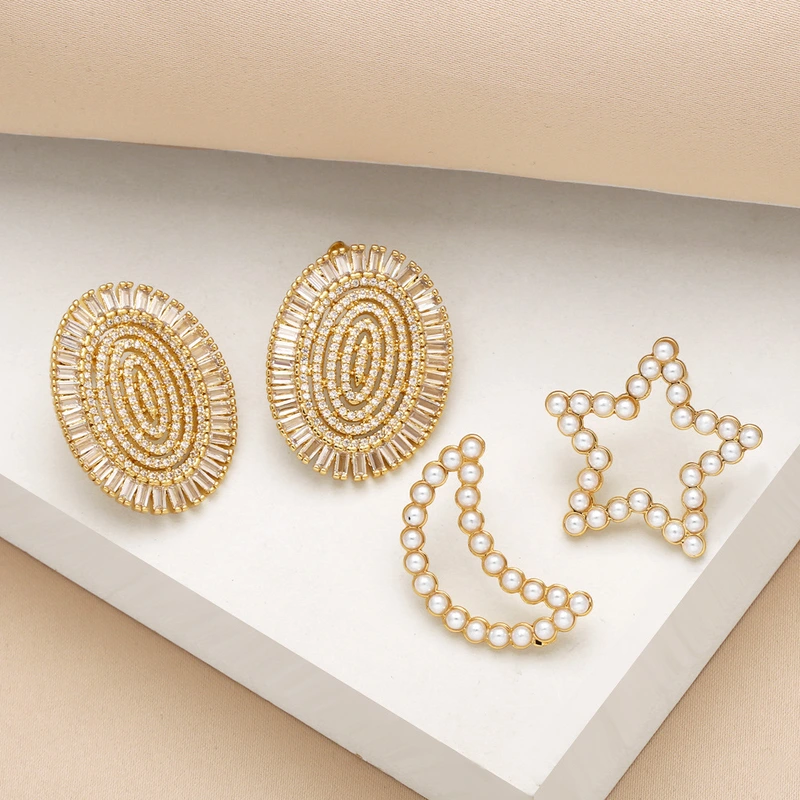 Boucles d'oreilles en forme de lune et de perles, style européen et américain, pour femmes, en plaqué cuivre, véritable or incrusté de zircons, boucles d'oreilles en forme d'étoile, era273