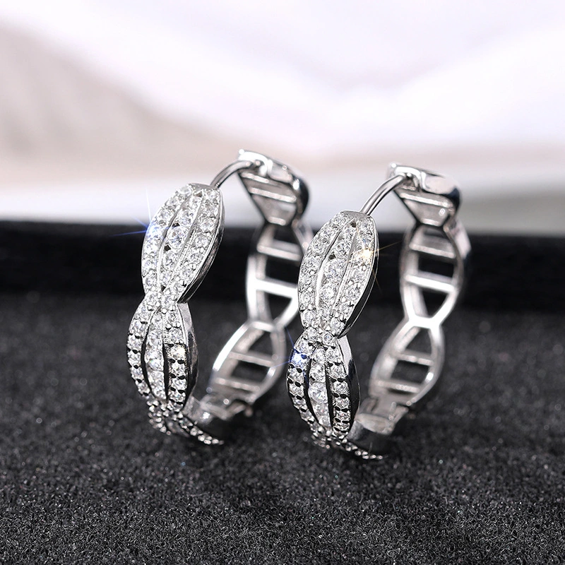 Boucles d'oreilles coréennes exquises en micro-incrusté de zircon, super brillantes, polyvalentes au quotidien, boucles d'oreilles de luxe haut de gamme légères fabricant source