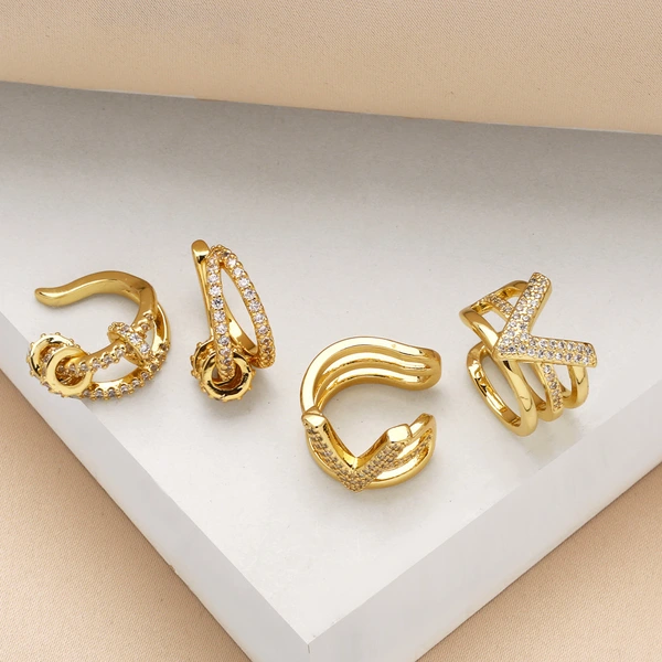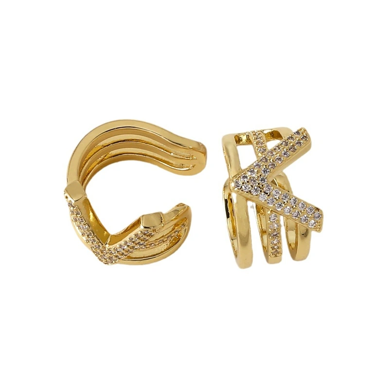 Boucles d'oreilles en forme de V, style européen et américain, haut de gamme, incrustées de zircons, plaquées cuivre, en or véritable, pour femmes, ERZ27