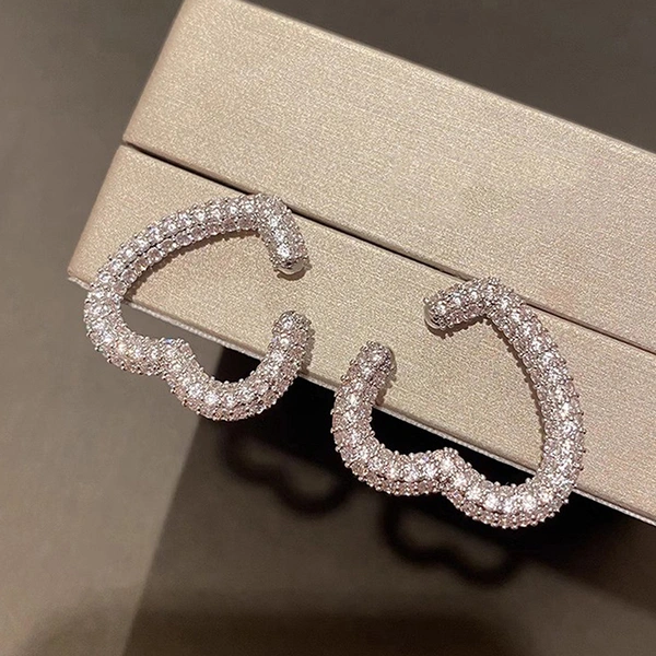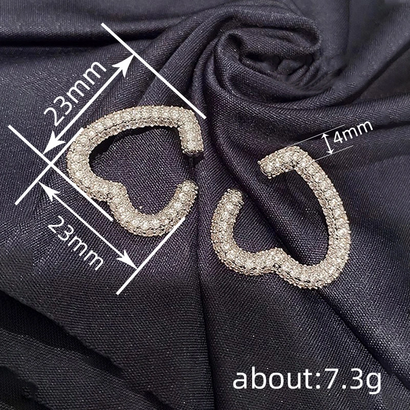 Boucles d'oreilles robustes entièrement incrustées, boucles d'oreilles luxueuses en forme de C en forme de cœur, boucles d'oreilles de mode européennes et américaines, 2024
