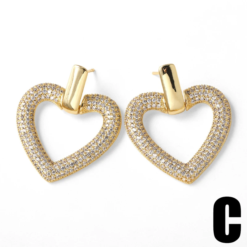 Boucles d'oreilles robustes entièrement incrustées, boucles d'oreilles luxueuses en forme de C en forme de cœur, boucles d'oreilles de mode européennes et américaines, 2024