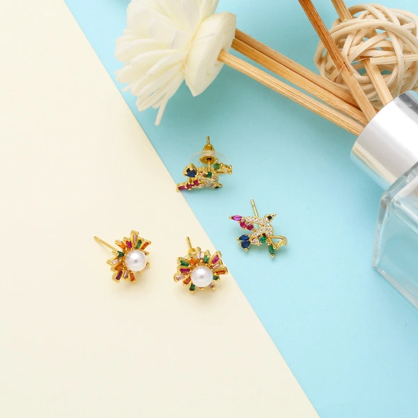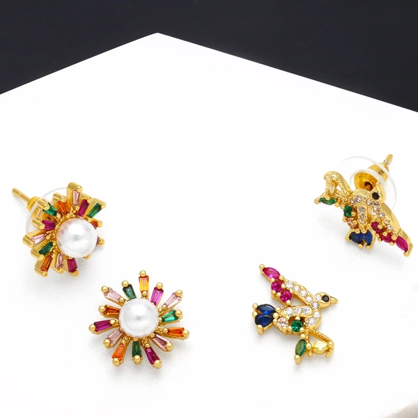 Boucles d'oreilles en perles de zircone colorées, style européen et américain, en forme d'oiseau, tendance, vente en gros, erq27