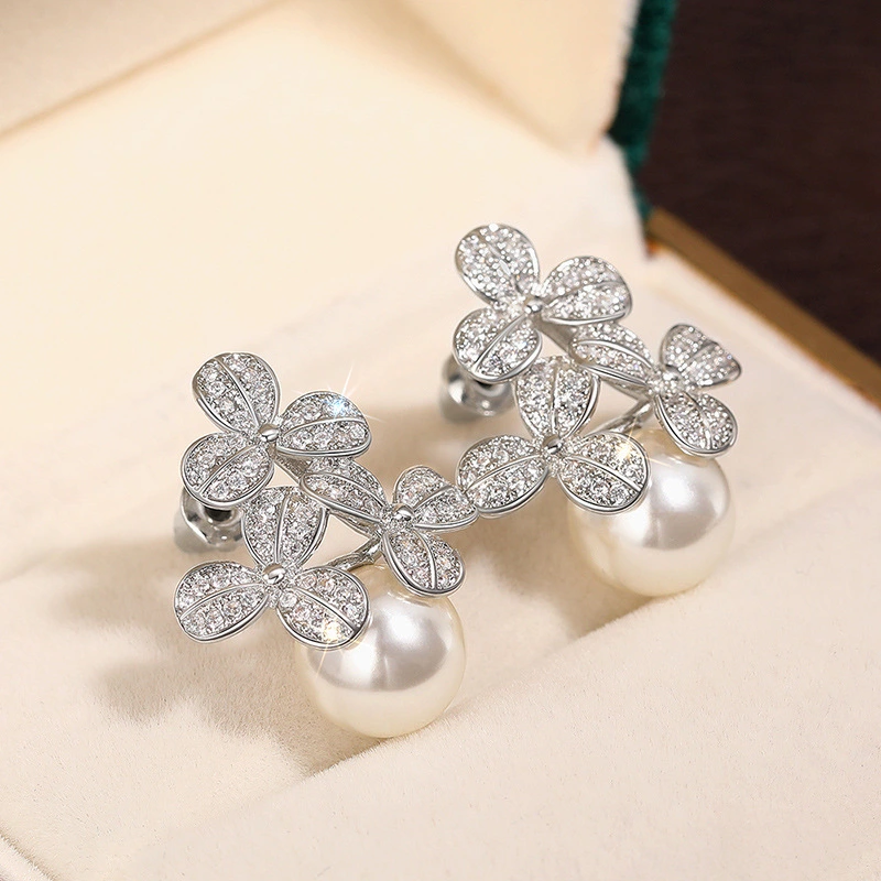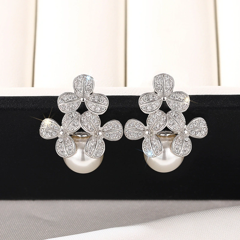 Boucles d'oreilles en perles d'imitation de fleurs pour femmes, tempérament élégant, accessoires frais, style petit parfum, vente chaude
