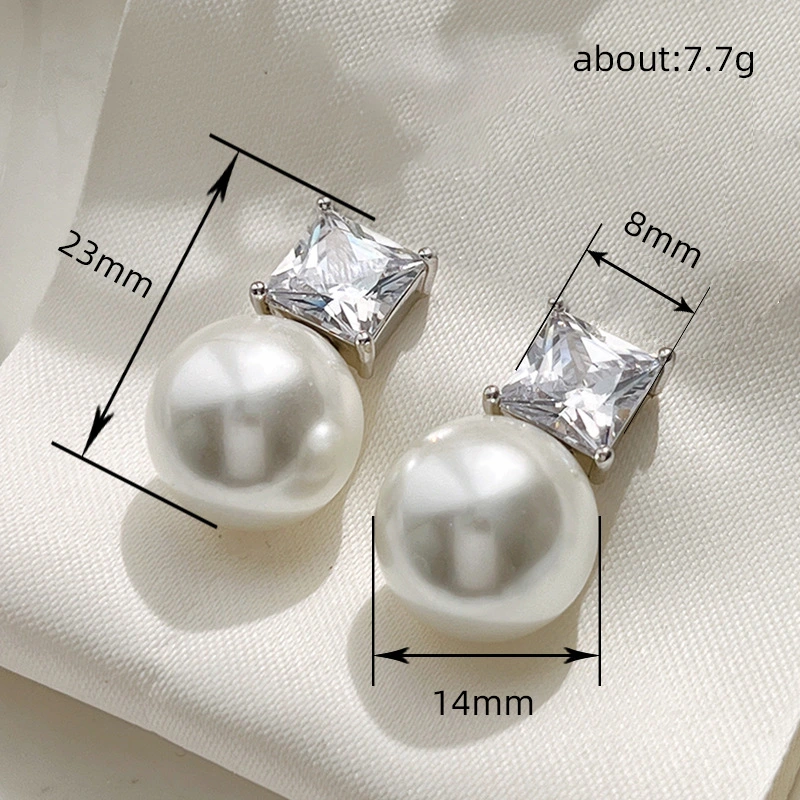 Boucles d'oreilles en perles d'imitation de grand diamètre, de style européen et américain, à la mode et simple, boucles d'oreilles carrées en diamant