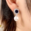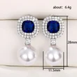 Boucles d'oreilles en perles d'imitation populaires et très vendues en Europe et en Amérique, boucles d'oreilles en zircon bleu saphir incrustées haut de gamme, vente directe d'usine