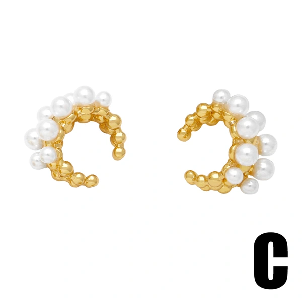 Boucles d'oreilles en perles simples européennes et américaines, design de niche féminin, boucles d'oreilles à clip creuses à double couche avancées erv65