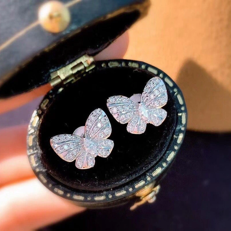 Boucles d'oreilles en zircon et diamant pour femmes, tendance, douces et fraîches, pour étudiantes, vente en gros