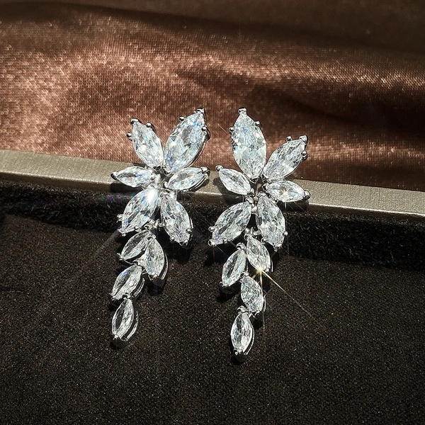 Boucles d'oreilles en zircon pour femmes, nouvelle collection haut de gamme, vente en gros de bijoux d'oreilles en forme de goutte d'eau atmosphérique