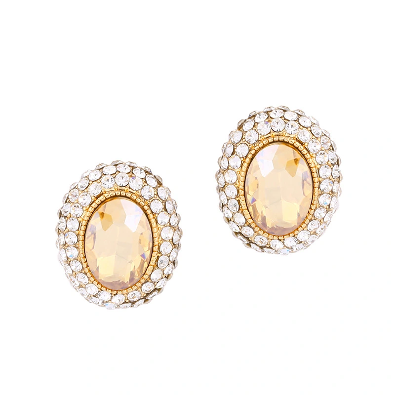 Boucles d'oreilles coréennes élégantes et élégantes, mélange et assortiment de boucles d'oreilles ovales micro-incrustées de zircons scintillants, vente directe d'usine