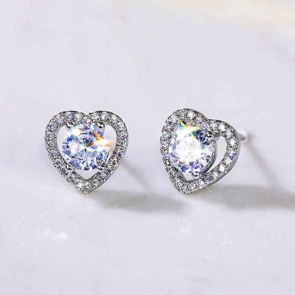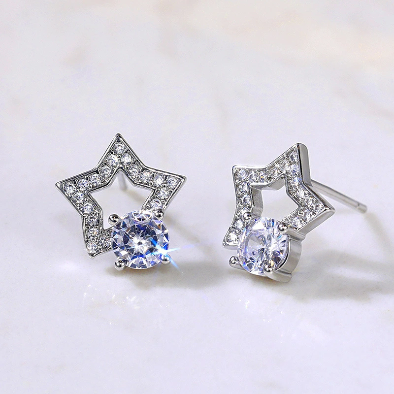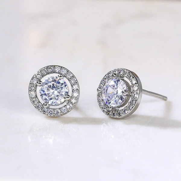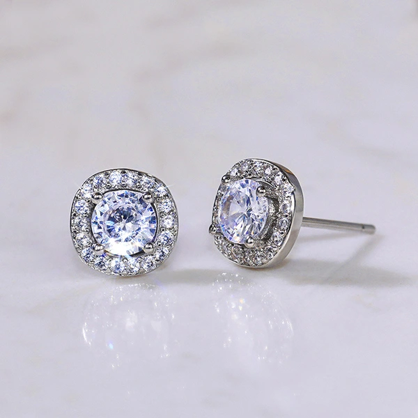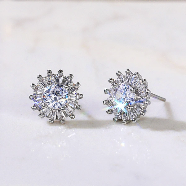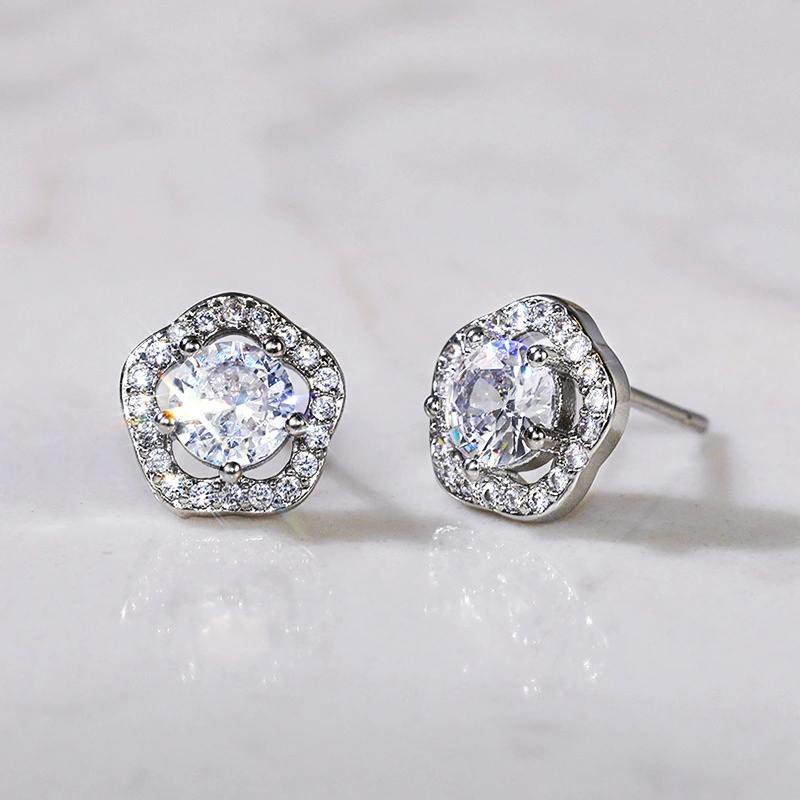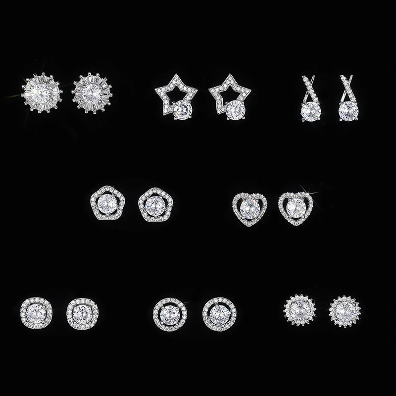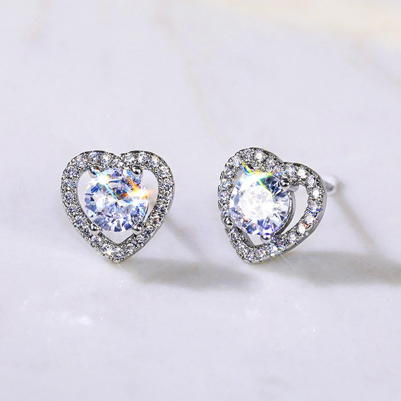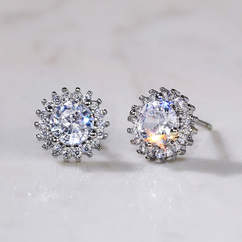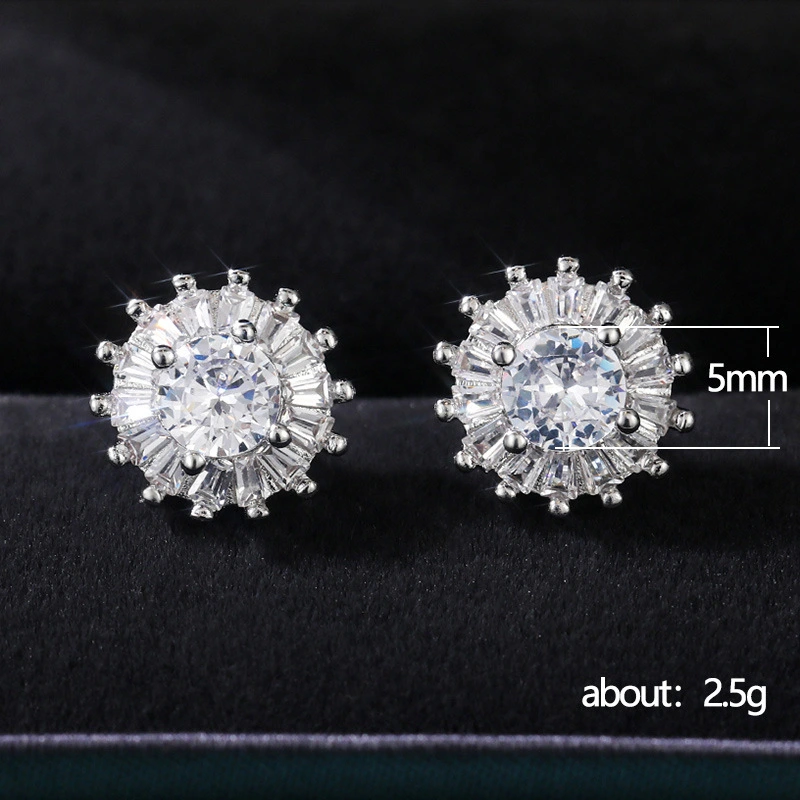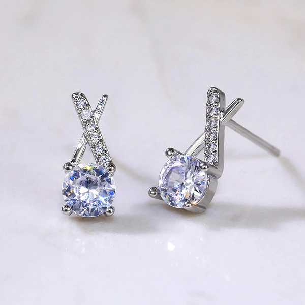 Boucles d'oreilles européennes et américaines tendance en zircone cubique pour femmes, simples, plaquées cuivre, en or blanc