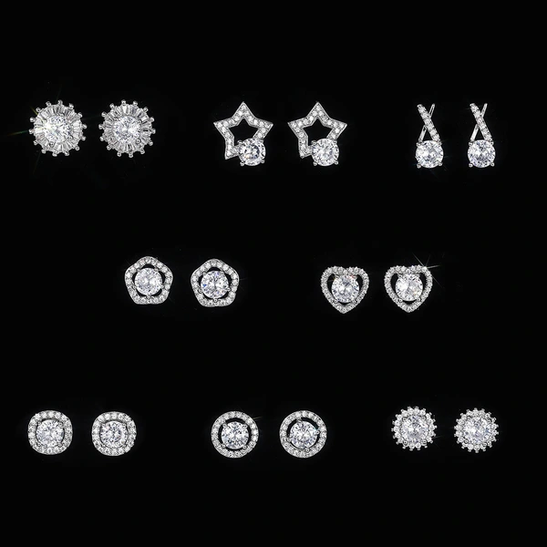 Boucles d'oreilles coréennes élégantes et élégantes, mélange et assortiment de boucles d'oreilles ovales micro-incrustées de zircons scintillants, vente directe d'usine