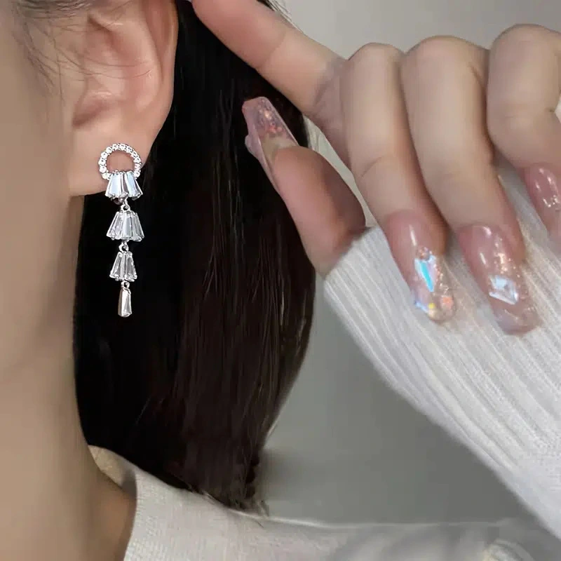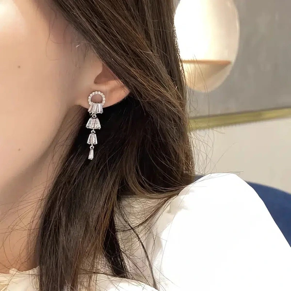 Boucles d'oreilles féeriques en zircon super flash, longues boucles d'oreilles tempérament femme muguet, boucles d'oreilles femme mariée super belles