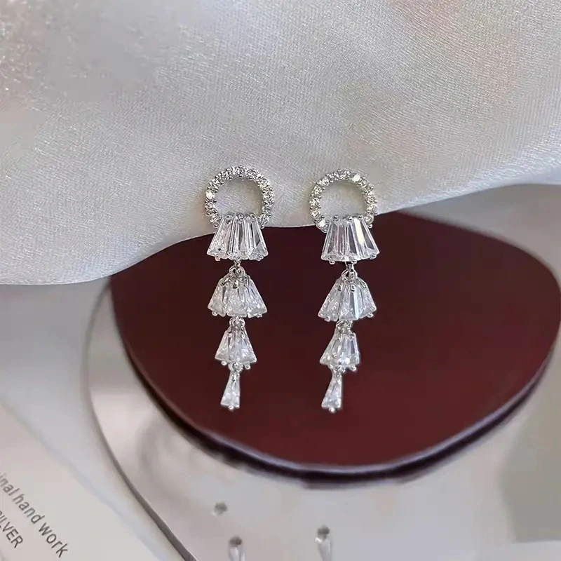 Boucles d'oreilles coréennes exquises en micro-incrusté de zircon, super brillantes, polyvalentes au quotidien, boucles d'oreilles de luxe haut de gamme légères fabricant source