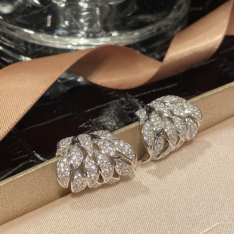 Boucles d'oreilles feuilles et arbres pour femmes, bijoux tendance et super brillants en zircon micro-incrusté, style célébrité, boucles d'oreilles de style luxe léger