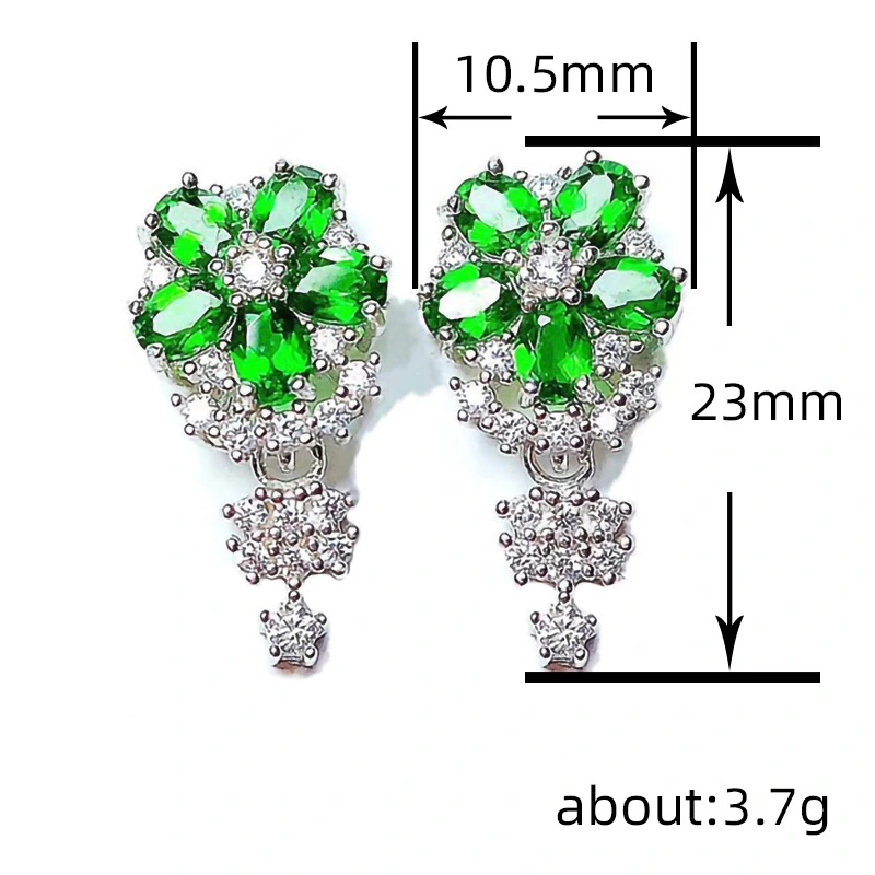 Boucles d'oreilles florales de style japonais et coréen, gracieuses et élégantes, en zircon vert, à la mode, pour femmes