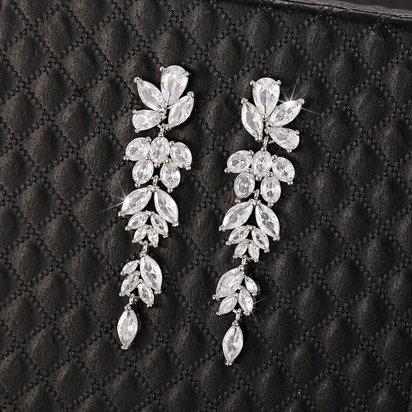 Boucles d'oreilles florales longues haut de gamme pour femmes, boucles d'oreilles de petite robe mettant en valeur le visage, boucles d'oreilles de mariée exagérées de tempérament