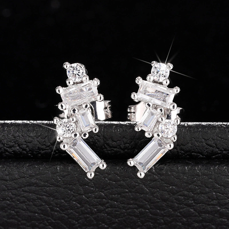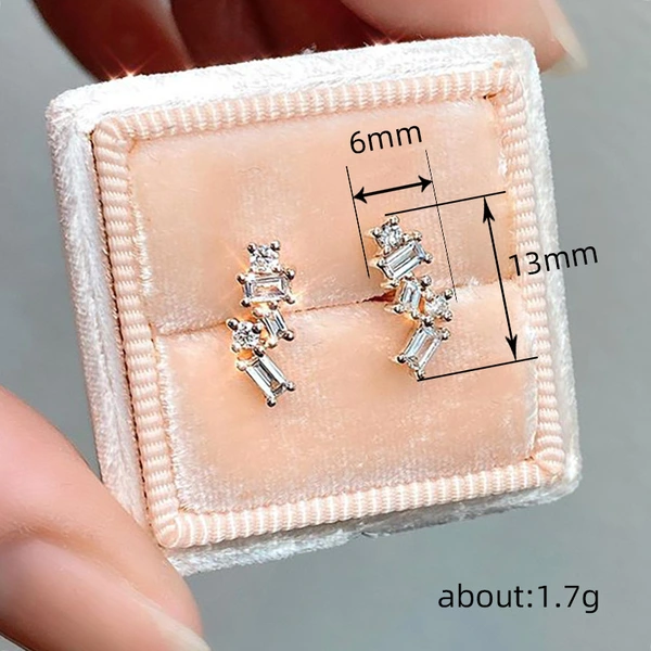 Boucles d'oreilles géométriques à quatre griffes incrustées de zircons pour femmes, boucles d'oreilles tendance à la mode, boucles d'oreilles quadrilatérales populaires