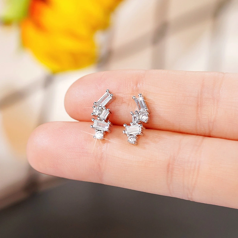 Boucles d'oreilles coréennes exquises en micro-incrusté de zircon, super brillantes, polyvalentes au quotidien, boucles d'oreilles de luxe haut de gamme légères fabricant source