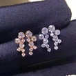 Boucles d'oreilles coréennes exquises en micro-incrusté de zircon, super brillantes, polyvalentes au quotidien, boucles d'oreilles de luxe haut de gamme légères fabricant source
