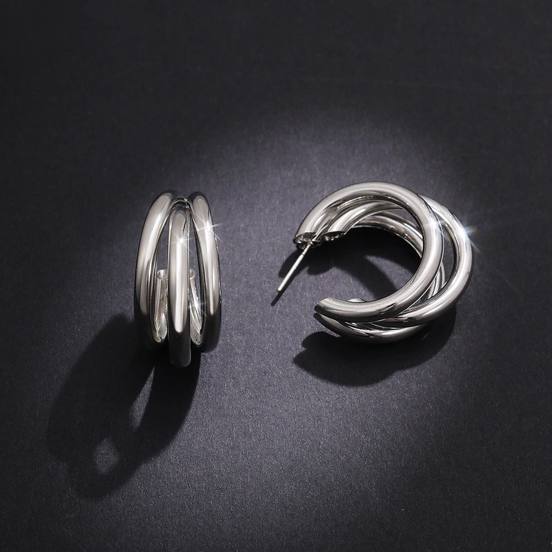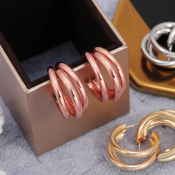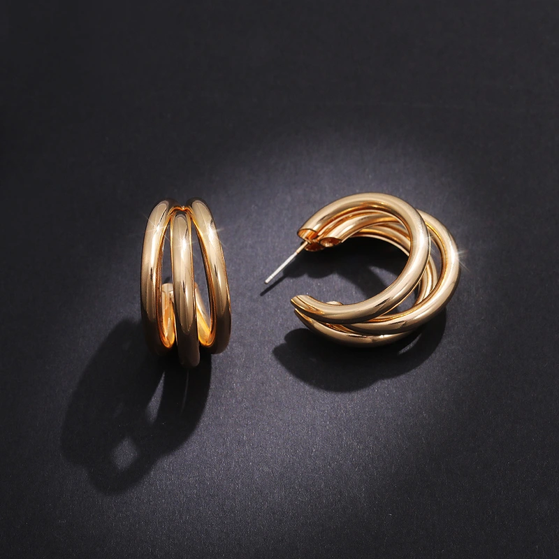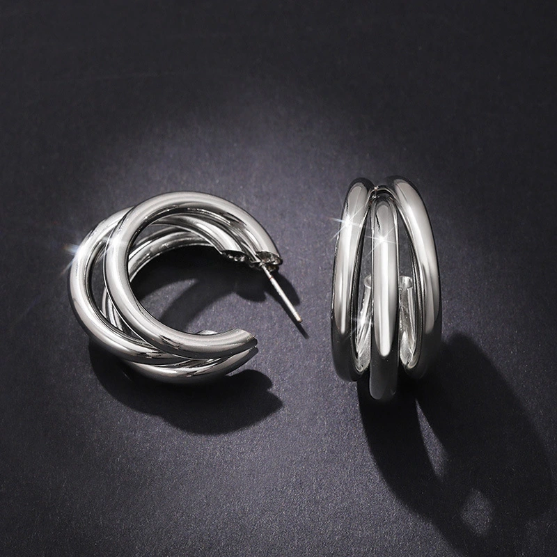 Boucles d'oreilles géométriques multicouches en métal de mode européenne et américaine pour femmes
