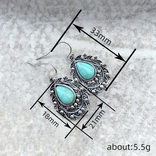 Boucles d'oreilles imitation turquoise asiatiques européennes et américaines pour femmes, goutte d'eau, littéraire et rétro, style ethnique élégant, bijoux fantaisie