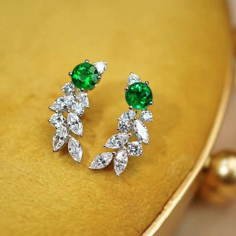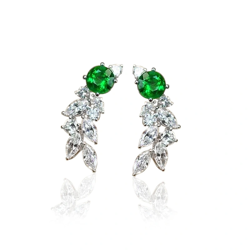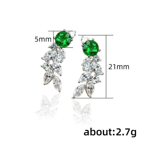 Boucles d'oreilles imitation zircon vert émeraude, boucles d'oreilles légères de luxe en forme de fleur, boucles d'oreilles rétro pour femmes avec pierres précieuses colorées