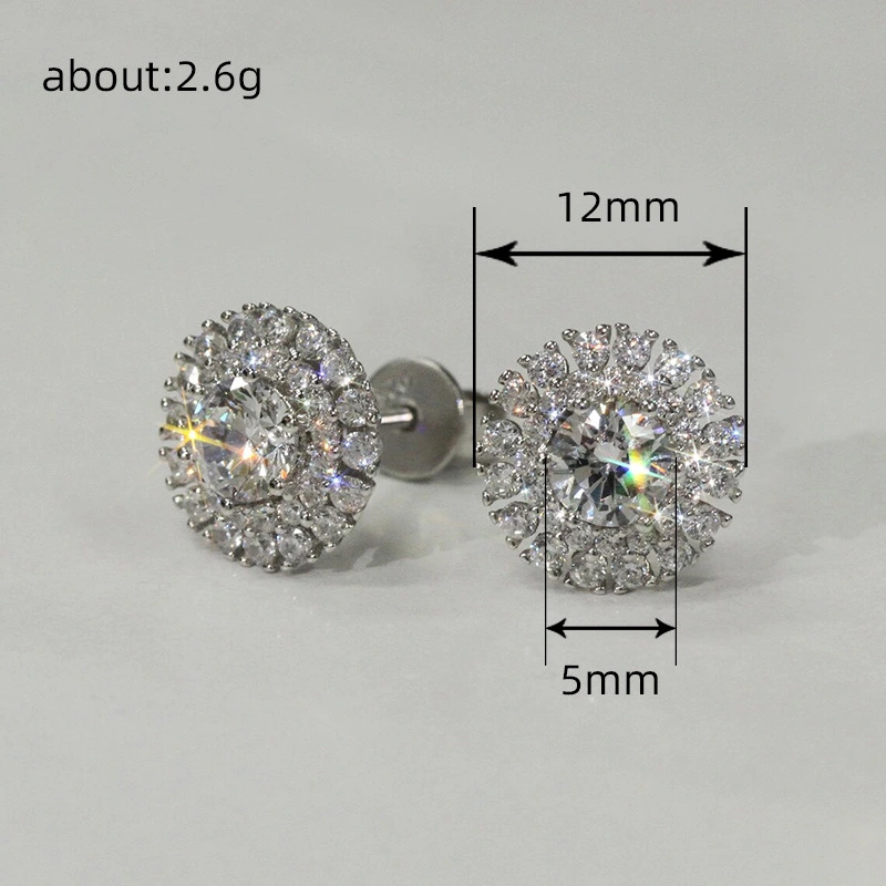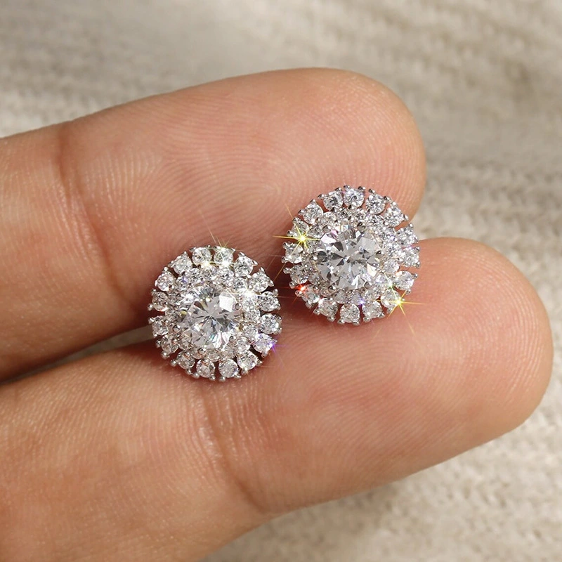 Boucles d'oreilles rondes en diamant, nouvelles, élégantes et super brillantes, de style tendance, pour femmes