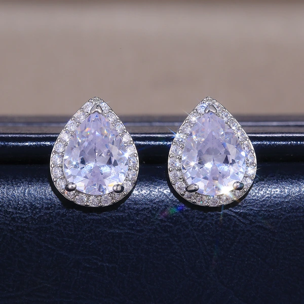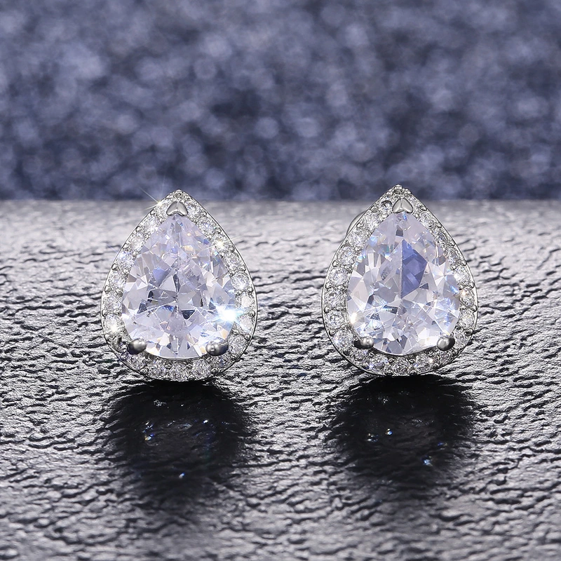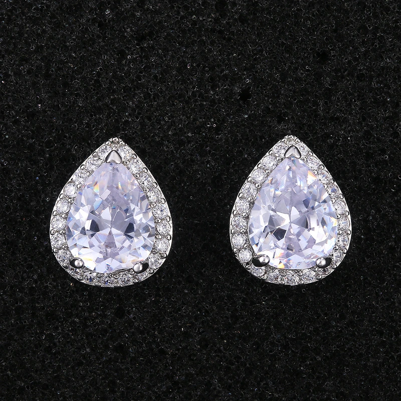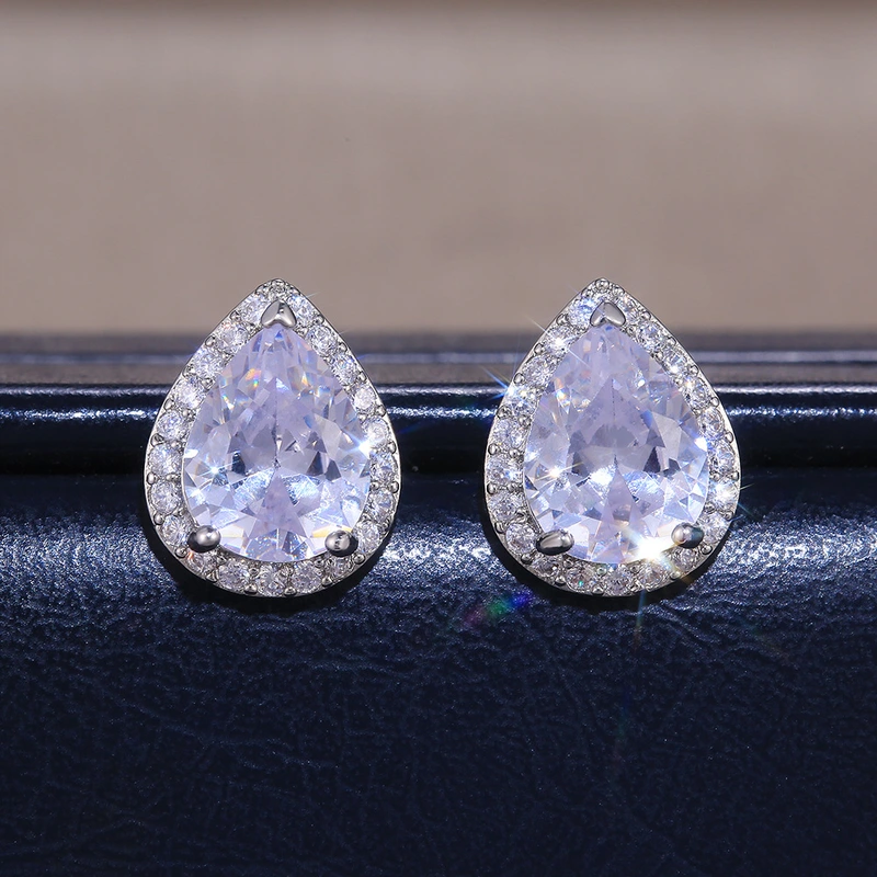 Boucles d'oreilles les plus vendues, boucles d'oreilles exquises en zircon en forme de larme pour femmes, vente en gros directe de fabricants européens et américains