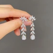 Boucles d'oreilles coréennes exquises en micro-incrusté de zircon, super brillantes, polyvalentes au quotidien, boucles d'oreilles de luxe haut de gamme légères fabricant source