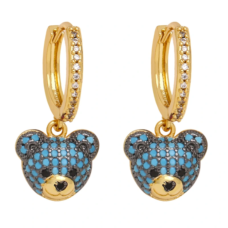 Boucles d'oreilles ours mignon, nouvelle mode européenne et américaine, boucles d'oreilles célébrités en filet pour femmes, boucles d'oreilles niche légères de luxe entièrement en diamant ert17