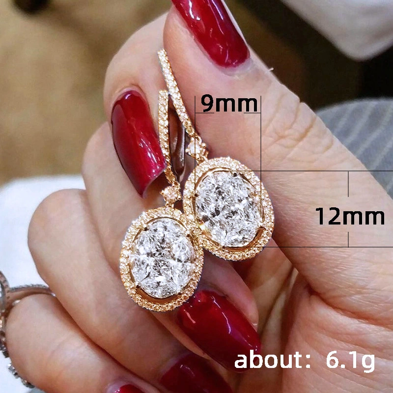 Boucles d'oreilles coréennes élégantes et élégantes, mélange et assortiment de boucles d'oreilles ovales micro-incrustées de zircons scintillants, vente directe d'usine